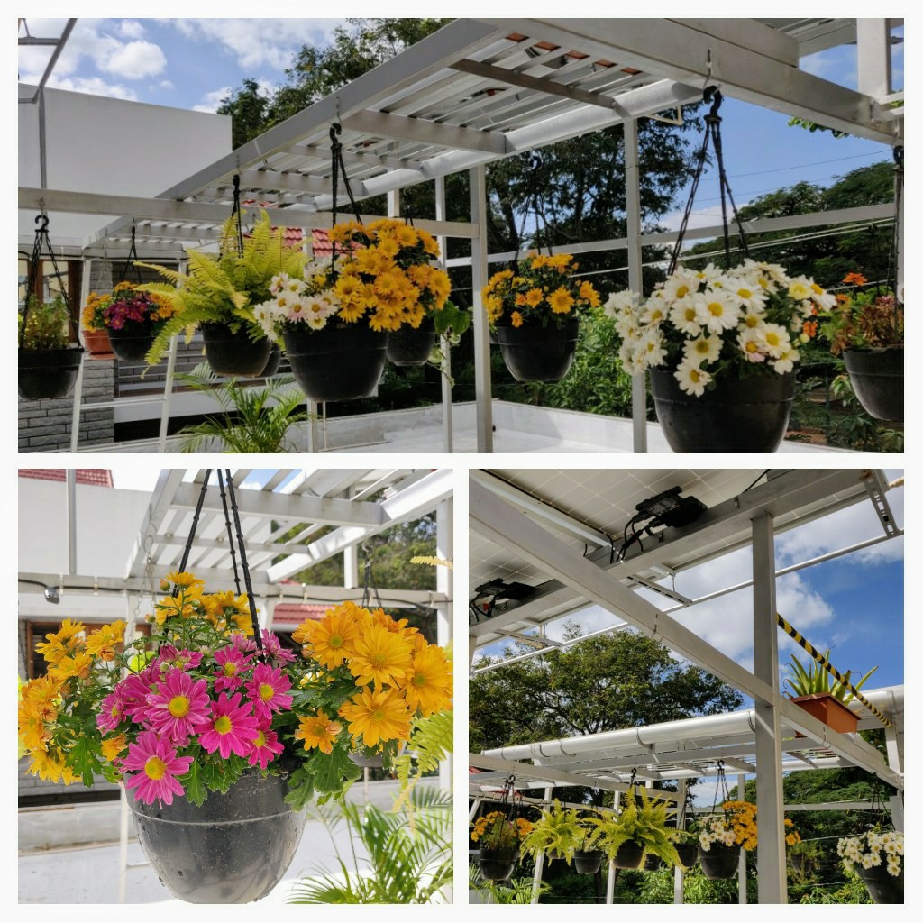This is one of the recent projects where a beautiful hanging garden is made below the solar panels .